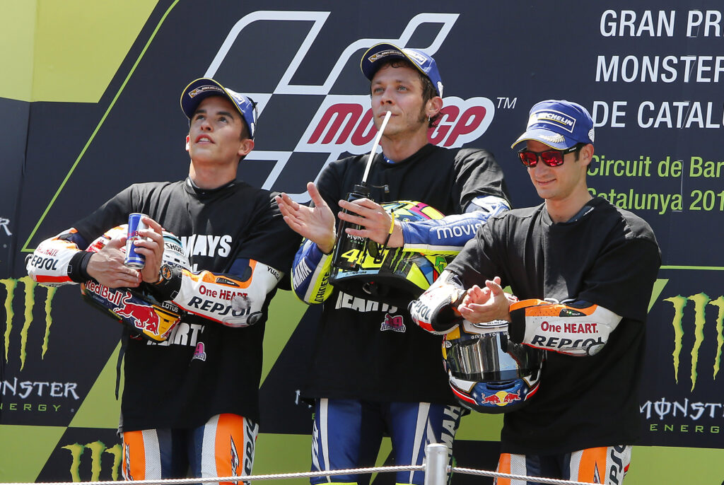 Márquez también ha intentado escribir allí sus capítulos. En 2016, en un clima enrarecido por las tensiones con Rossi, el de Cervera llegó emparejado con su viejo ídolo en las últimas vueltas. Esta vez fue él quien cerró la puerta y se llevó el triunfo, demostrando que la curva podía dar gloria a distintos nombres, pero siempre con la misma dosis de riesgo.